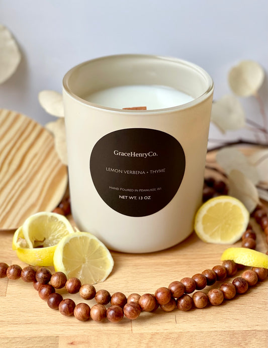 LEMON VERBENA + THYME 13oz Wooden Wick Candle