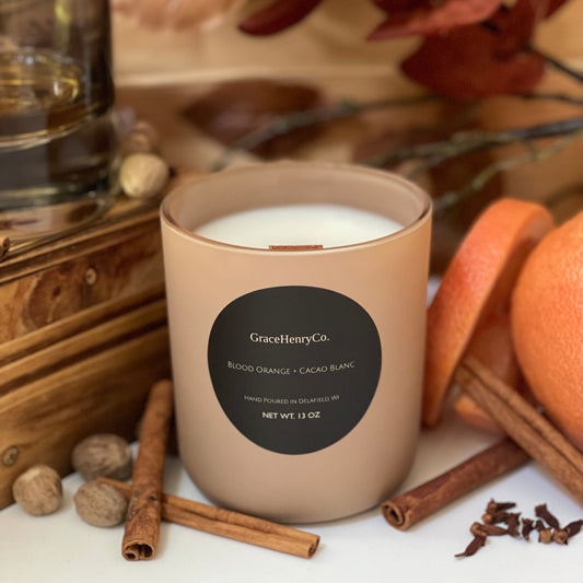 Blood Orange + Cacao Blanc 13oz Wooden Wick Candle