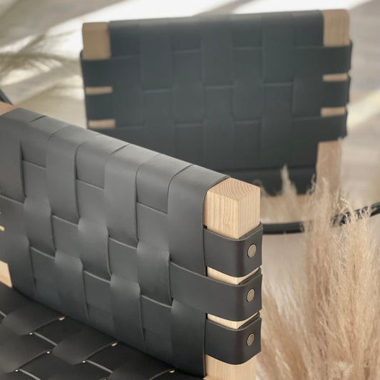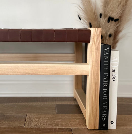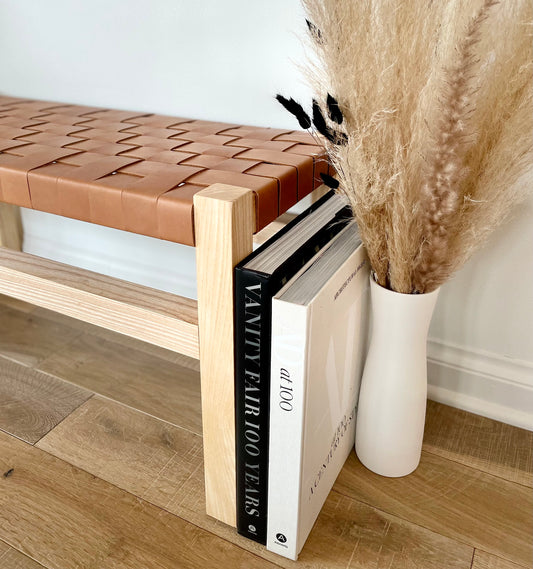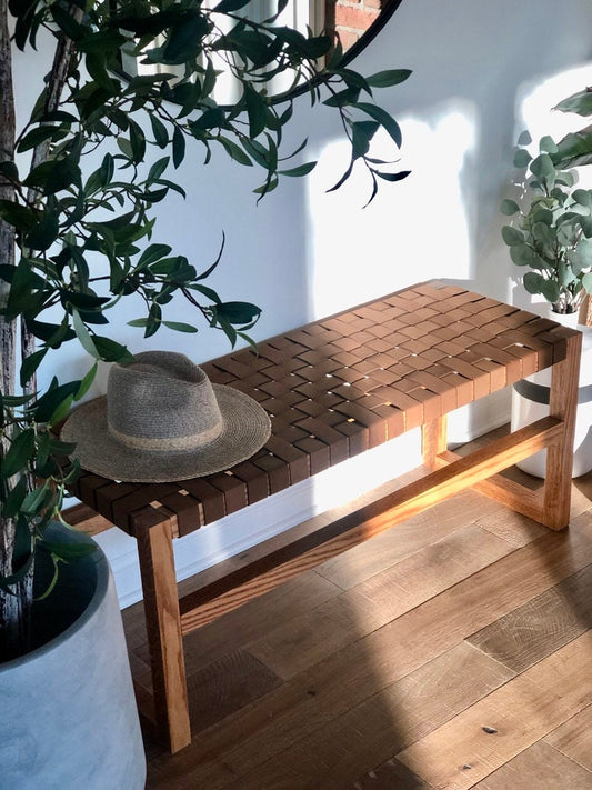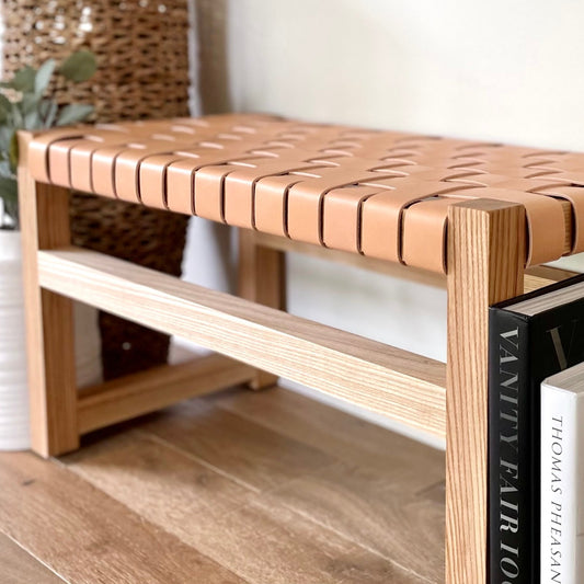 Woven Leather Bench in Golden Oak-Tanned Leather
