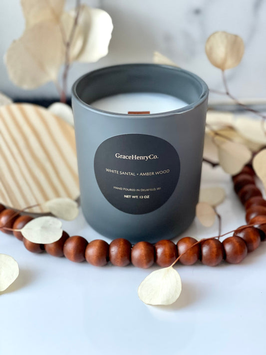 WHITE SANTAL + AMBERWOOD 13oz Wooden Wick Candle