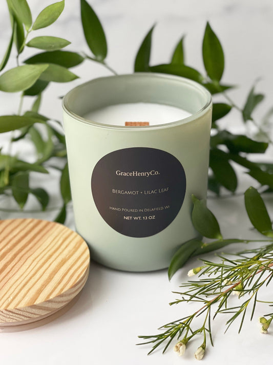 BERGAMOT + LILAC LEAF 13oz Wooden Wick Candle